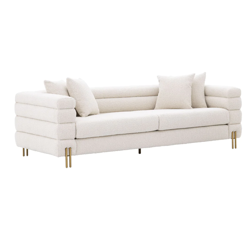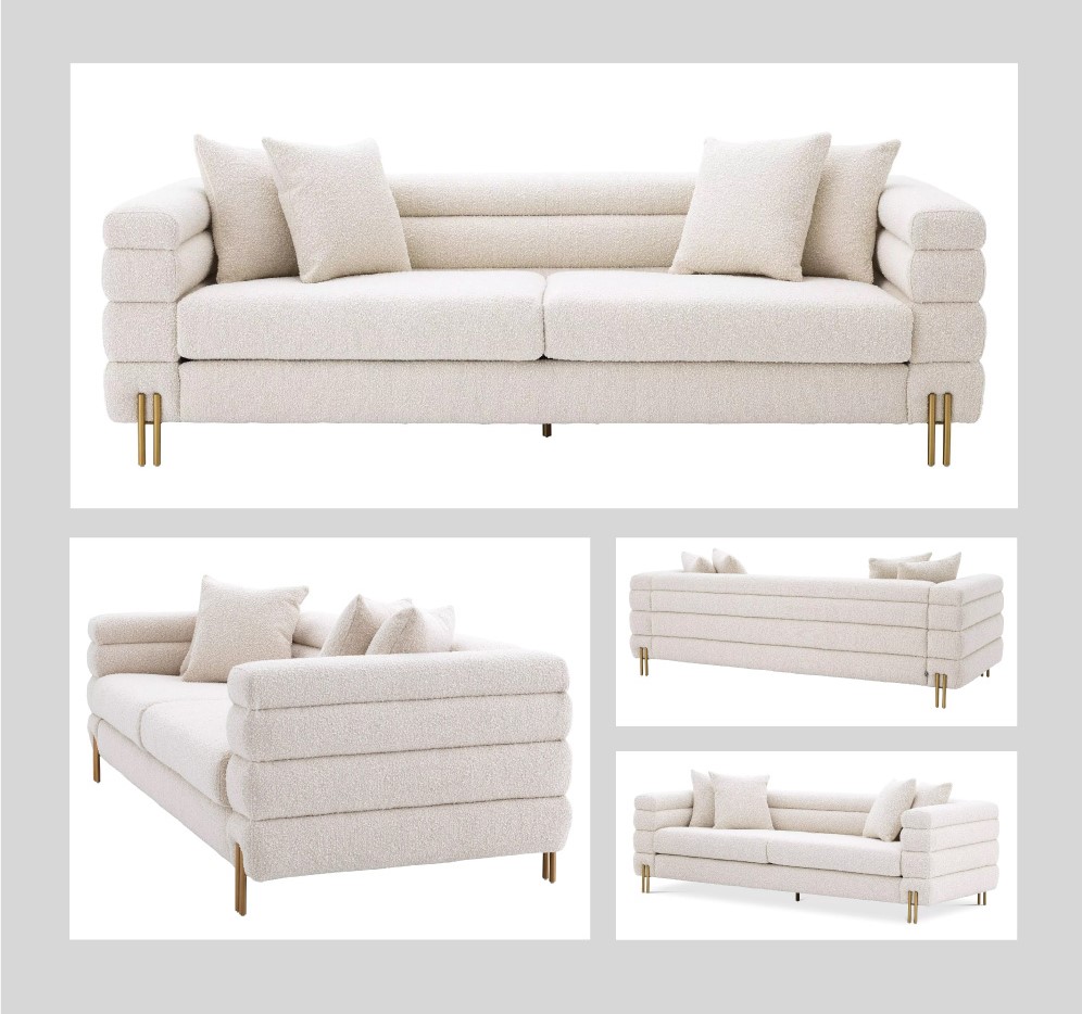 Material tapiterie: Canapeaua Galati este tapitată cu boucle de înaltă calitate, un material luxos, durabil și ușor de întreținut, care conferă un aspect elegant și plăcut la atingere.