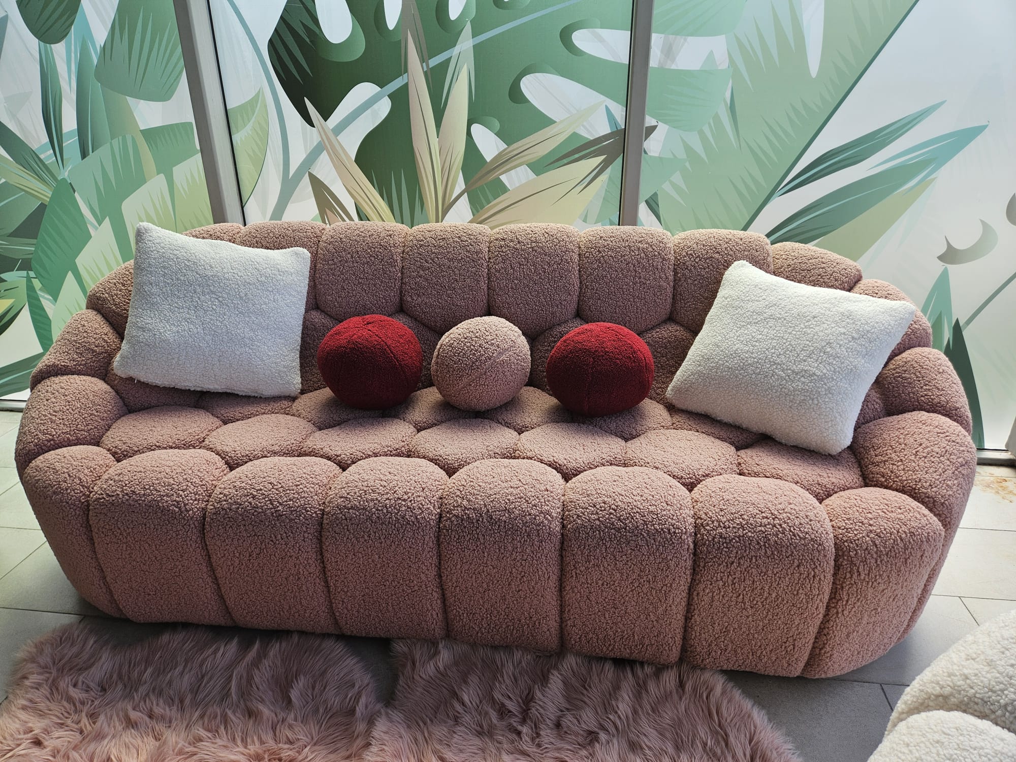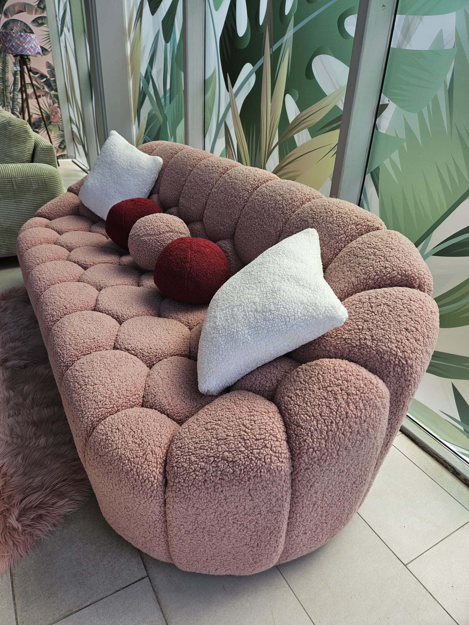 Special concepută pentru a oferi momente de confort și relaxare, canapeaua Bubble Boucle Roz este o piesă de mobilier elegantă ce completează perfect decorul casei tale! Materialul plușat și impermeabil oferă, deopotrivă, stil și rafinament, aducând un strop din tendințele actuale mai aproape de tine.