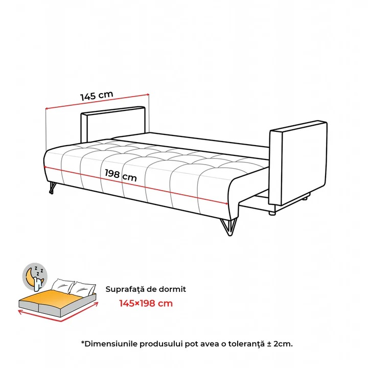 Suprafata de dormit: 198×145 cm
