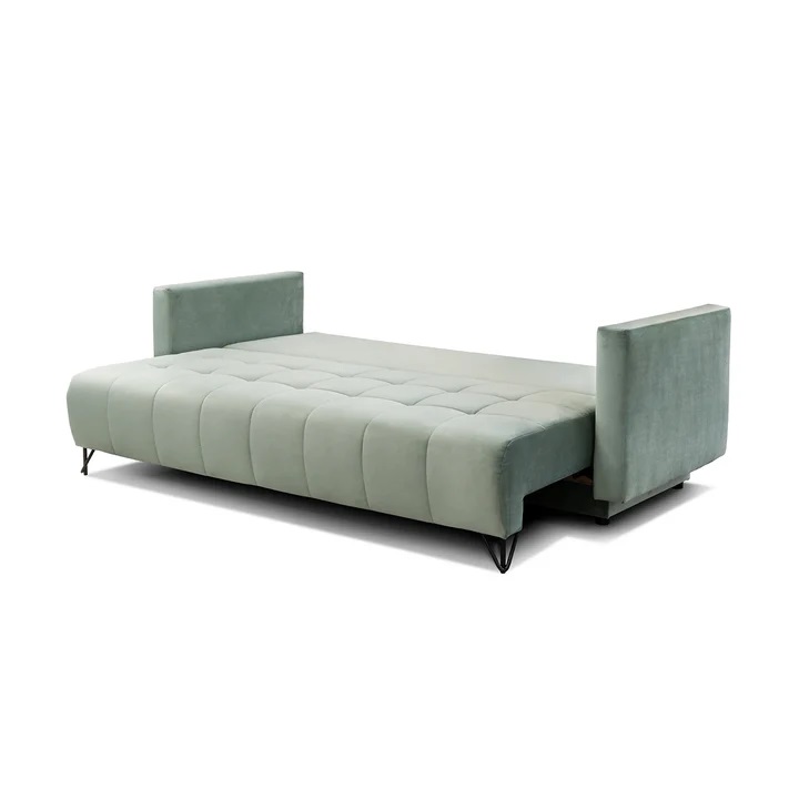 CANAPEA EXTENSIBILA CU LADA PENTRU DEPOZITARE, STOFA CATIFELATA ALBASTRU – Monolith 77, 227x106x92 CM