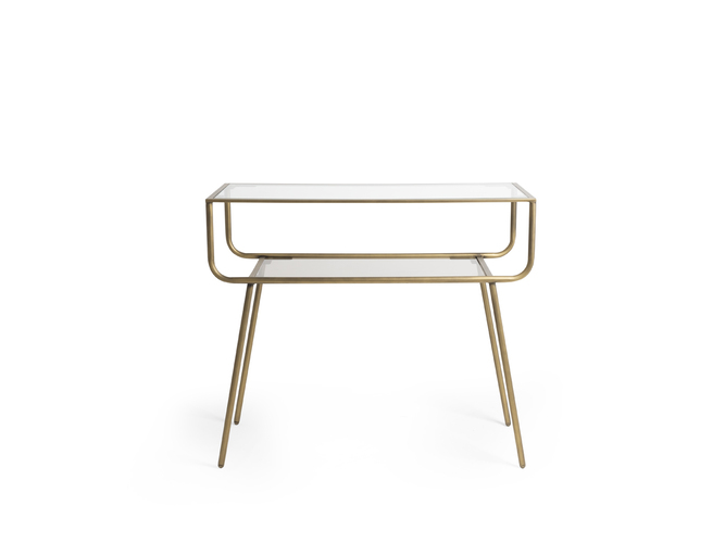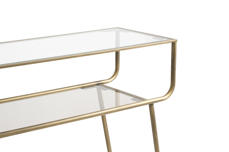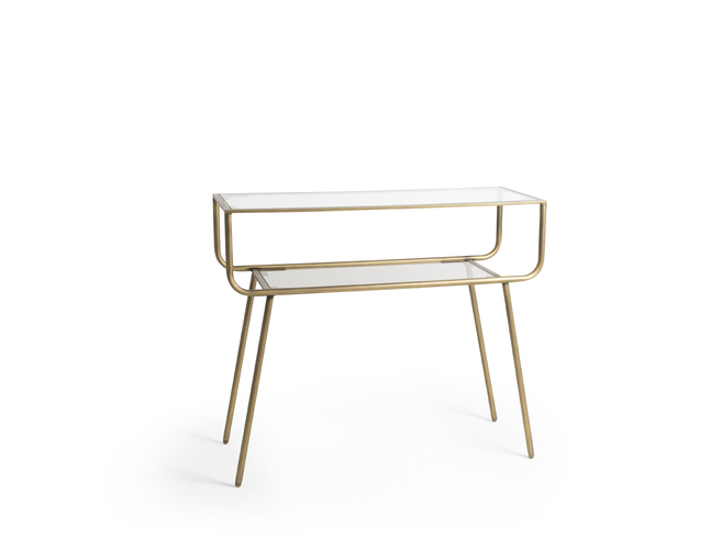 Consola Aris Big este alegerea ideală pentru cei care caută un accent sofisticat în decorul interior. Cu un design rafinat, structură metalică aurie și blat din sticlă transparentă, această piesă de mobilier adaugă luminozitate și stil oricărui spațiu. Perfectă pentru holuri, livinguri sau birouri moderne, consola oferă un spațiu funcțional pentru decoruri, reviste sau obiecte personale, menținând un aspect aerisit și elegant. Picioarele subțiri și linia curbată a structurii subliniază eleganța modernă în fiecare detaliu.