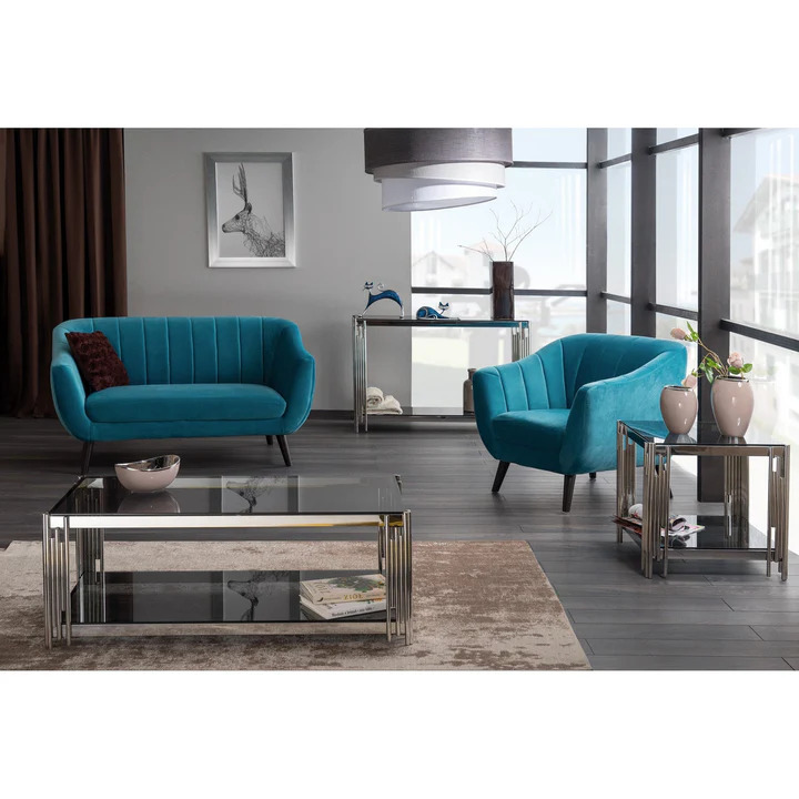 Consola FOSSIL C, argintie, metal/sticla securizata, 120x40x78