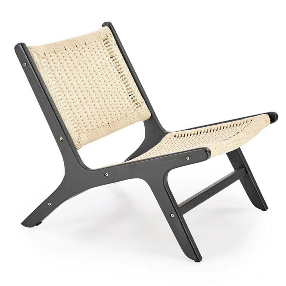 Scaun gradina FODEN, negru, sfoara/lemn, 65x84x74 cm