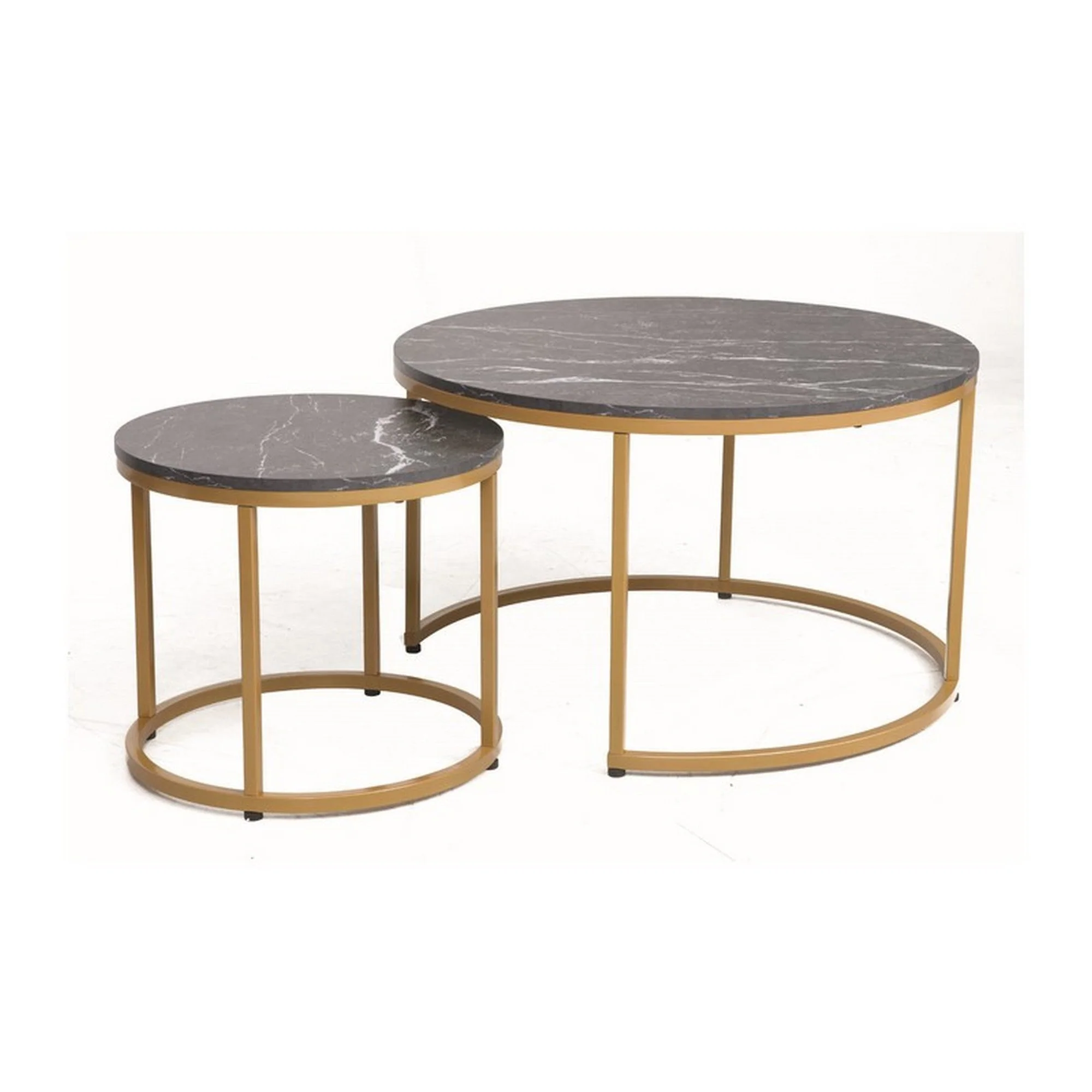 Set 2 masute de cafea DION, negru/auriu, PAL/metal