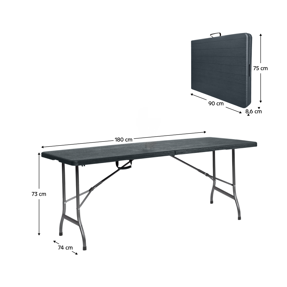 Dimensiunile mesei după pliere (lxAxh): 90×8,6×75 cm