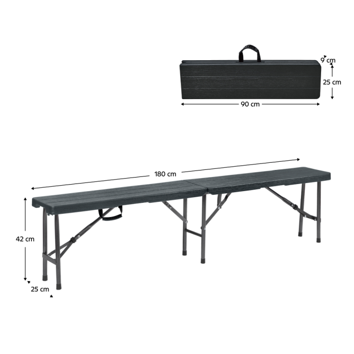 Dimensiunile băncii după pliere (lxAxh): 90x9x25 cm