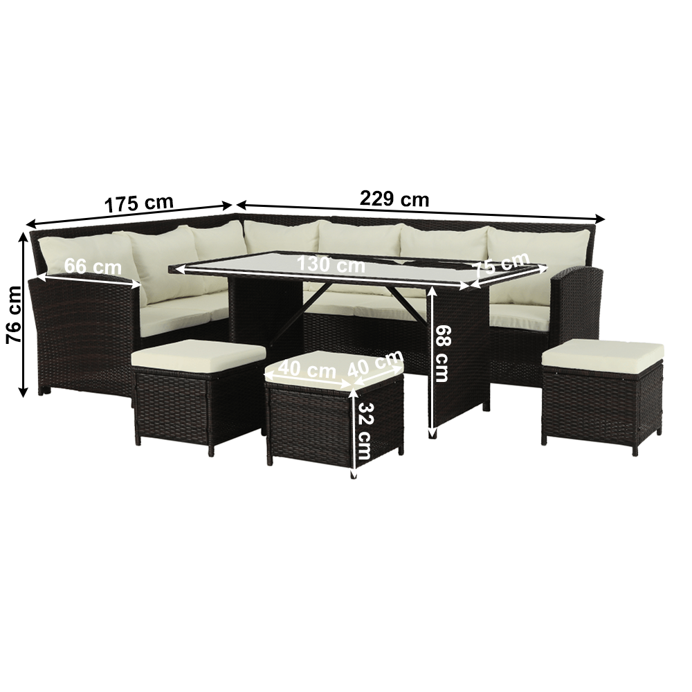 Dimensiunile canapelei (LxAxH): 229×175/66×76 cm