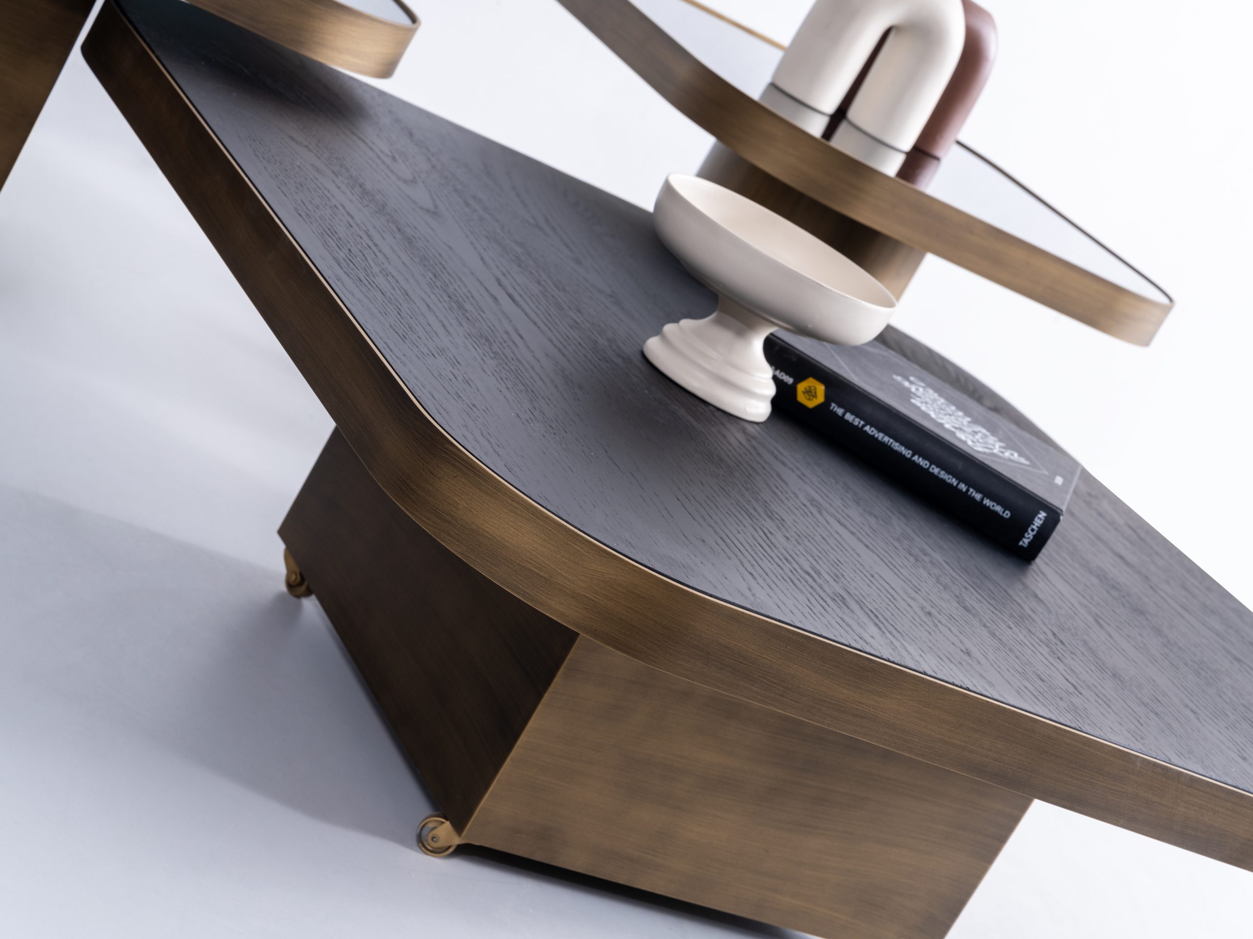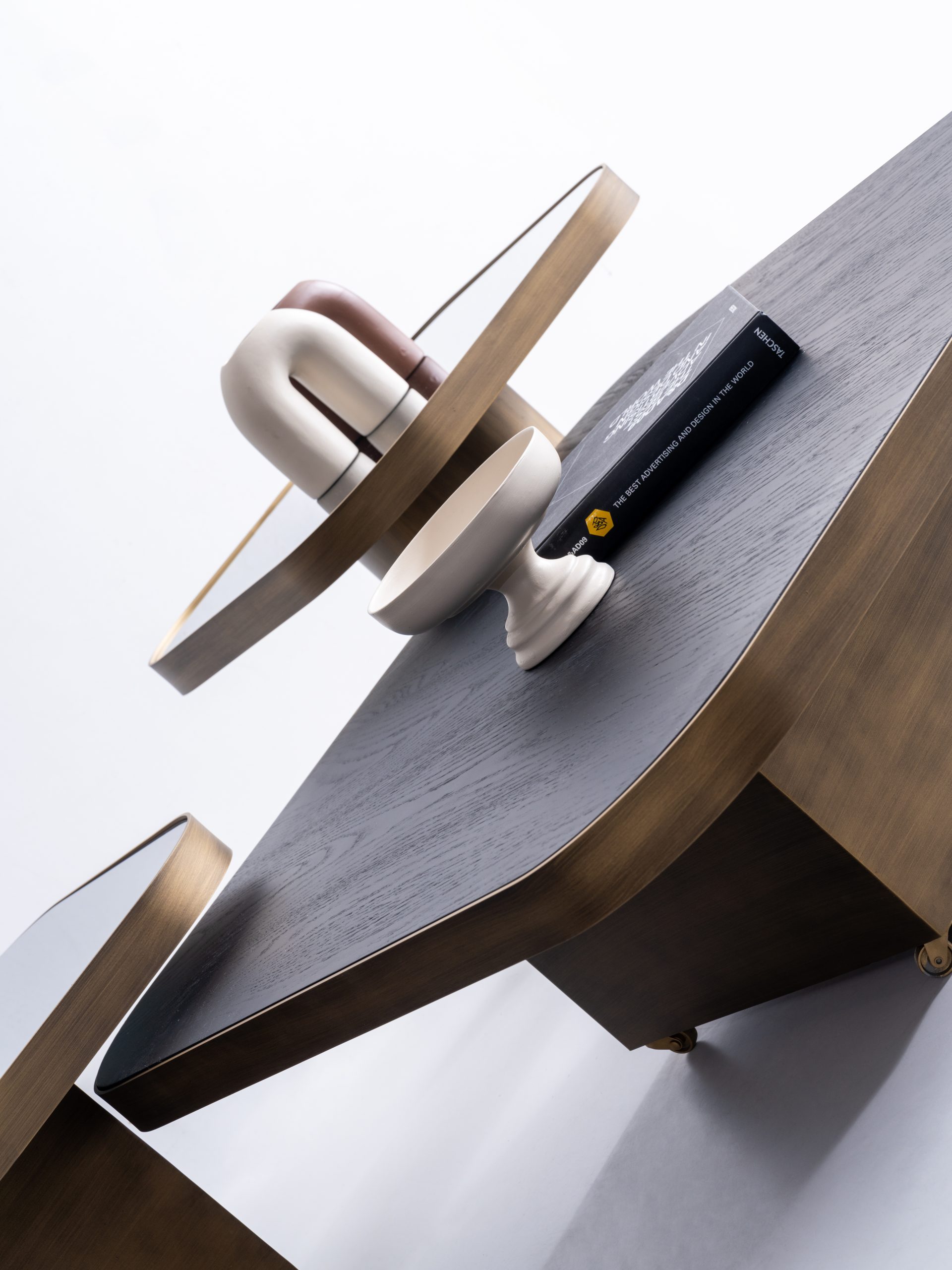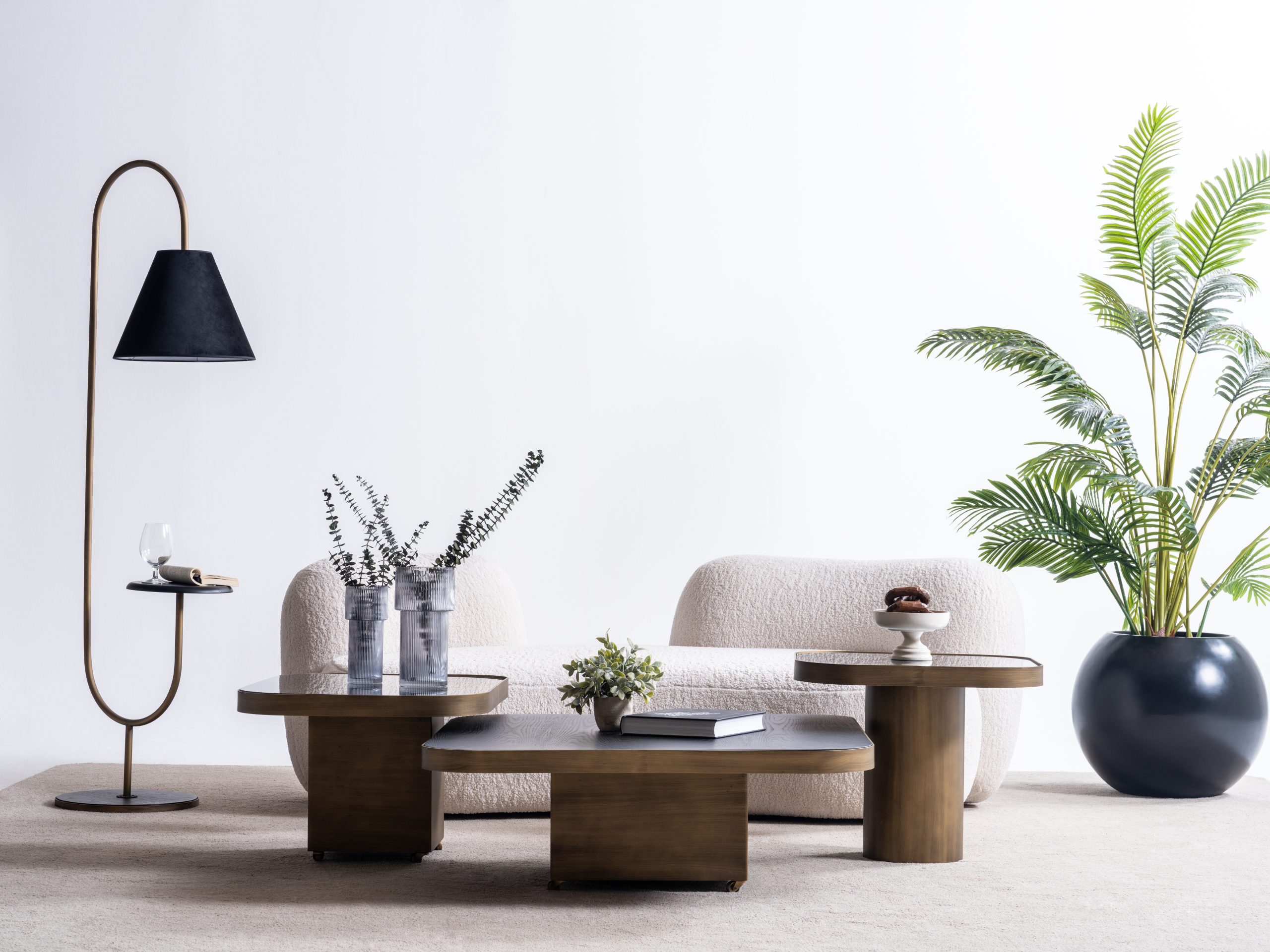 Setul este format din trei măsuțe cu înălțimi și dimensiuni diferite, ce pot fi dispuse individual sau grupate într-o compoziție unitară – adaptându-se cu ușurință atât în spații largi, cât și în livinguri compacte.